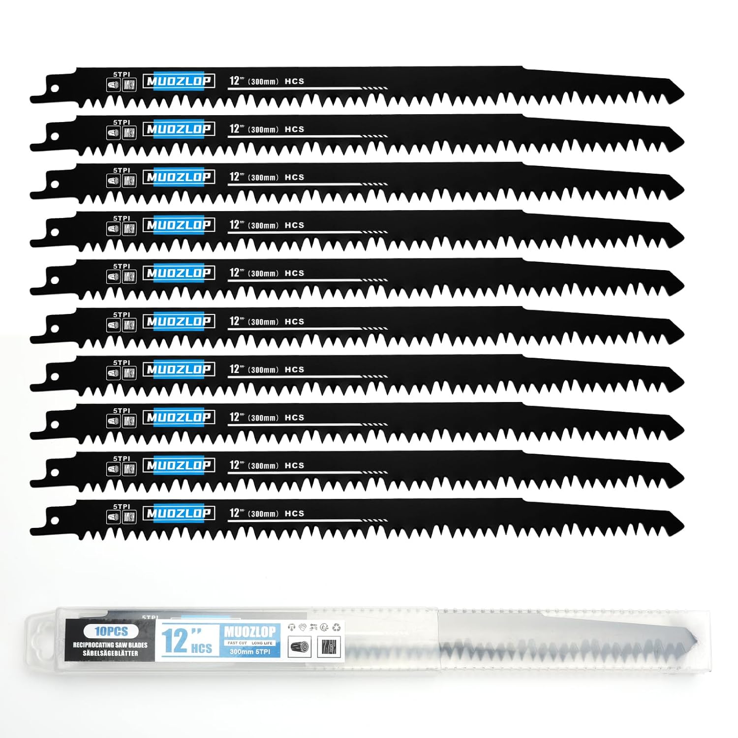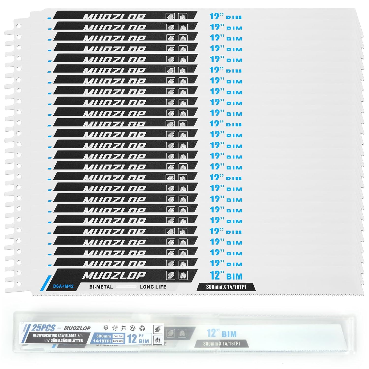 Packing includes: Includes 25 pcs pack 12in 14 TPI reciprocating saw blades, neatly stacked in a transparent non-disposable box, we can always remove one of the pieces and reclose the box when using it