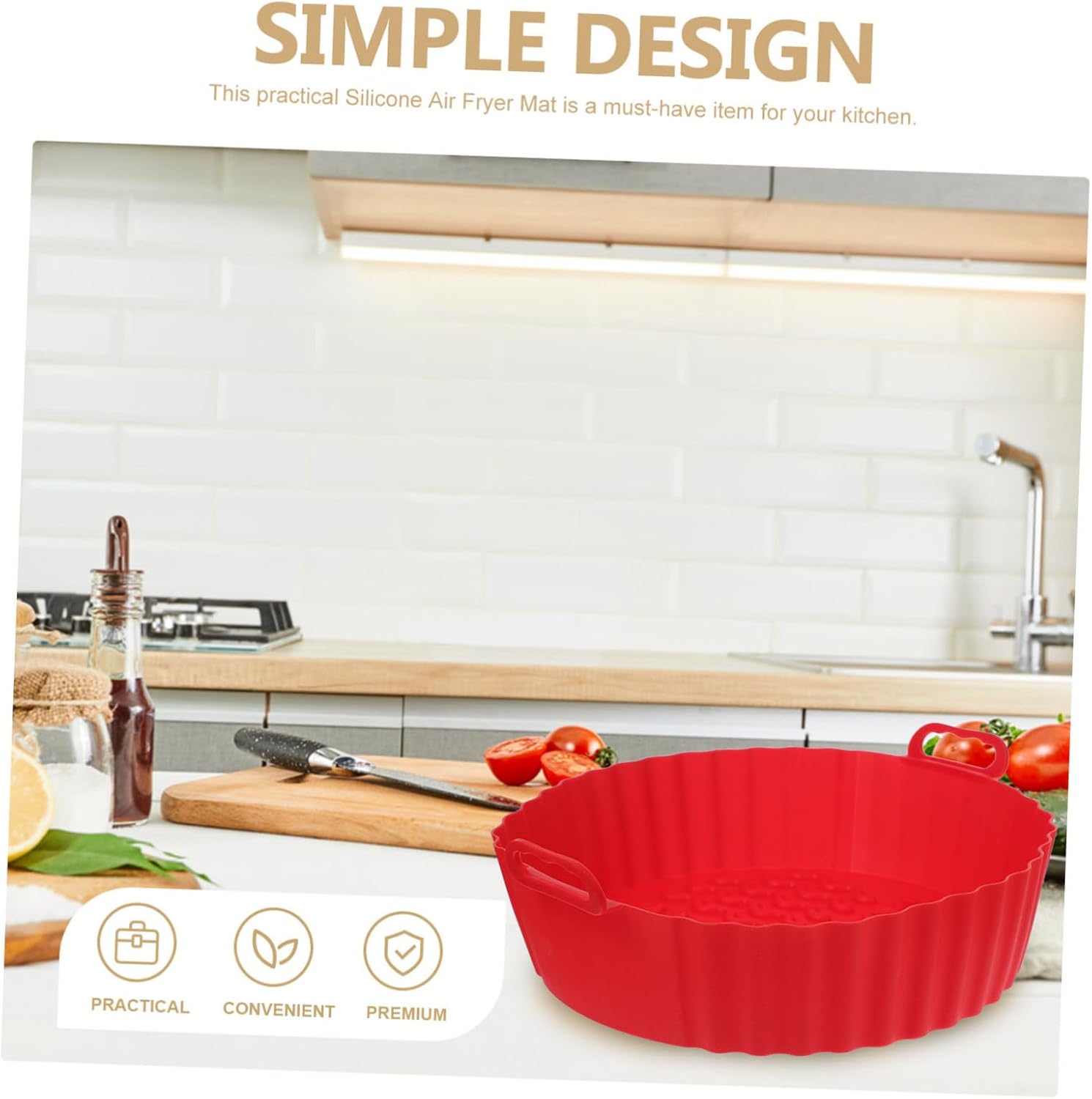 Package Include 5 x Silicone Baking Tray Characteristics -Color:Red oven air fryer accessories - Size: 20.00X20.00X5.00cm/7.86X7.86X1.97in silicone for air fryer -Material:Silicone household baking mat -Our product is for maintaining the and integrity of food, such as chips, snacks, chicken wings and legs, etc air fryer protective tray. -Made up of silicone material, heat-resistant and reusable, the Air Fryer Protective Tray is not easy to deform or tear air fryer silicone liner. -It is also able to prevent your food sticking on the paper, thus reducing the use of oils and butter oven pad with handle. -The unique stripe design of the mat makes it easier for you to clean and make food crispy with even heat distribution silicone mat for air fryer. -The liner can prevent food from directly with the air fryer and stains, ensuring the safety of your food baking liner for air fryer.Goods Descriptionsilicone pot for air fryer tray It is also easy to clean and safe for your food.silicone air fryer tray This practical Silicone Air Fryer Mat is a must-have item for your kitchen.silicone liner for air fryer It is helpful when you are baking or using your air fryer.kitchen air fryer mat With the anti-sticking design of our silicone pad, you don't have to worry about wasting food or damaging your air fryer