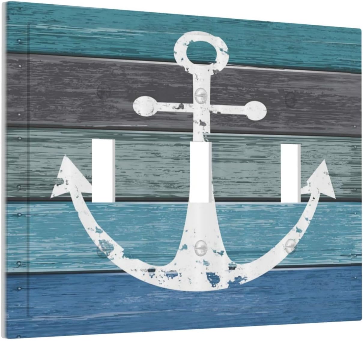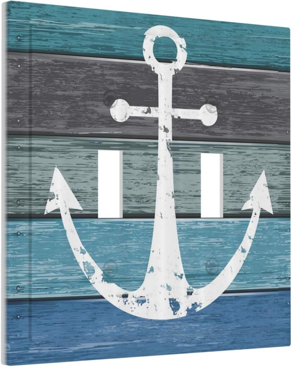 | Color | Anchor Sailing Nautical Rustic Style Marine Blue Green Planks Art |