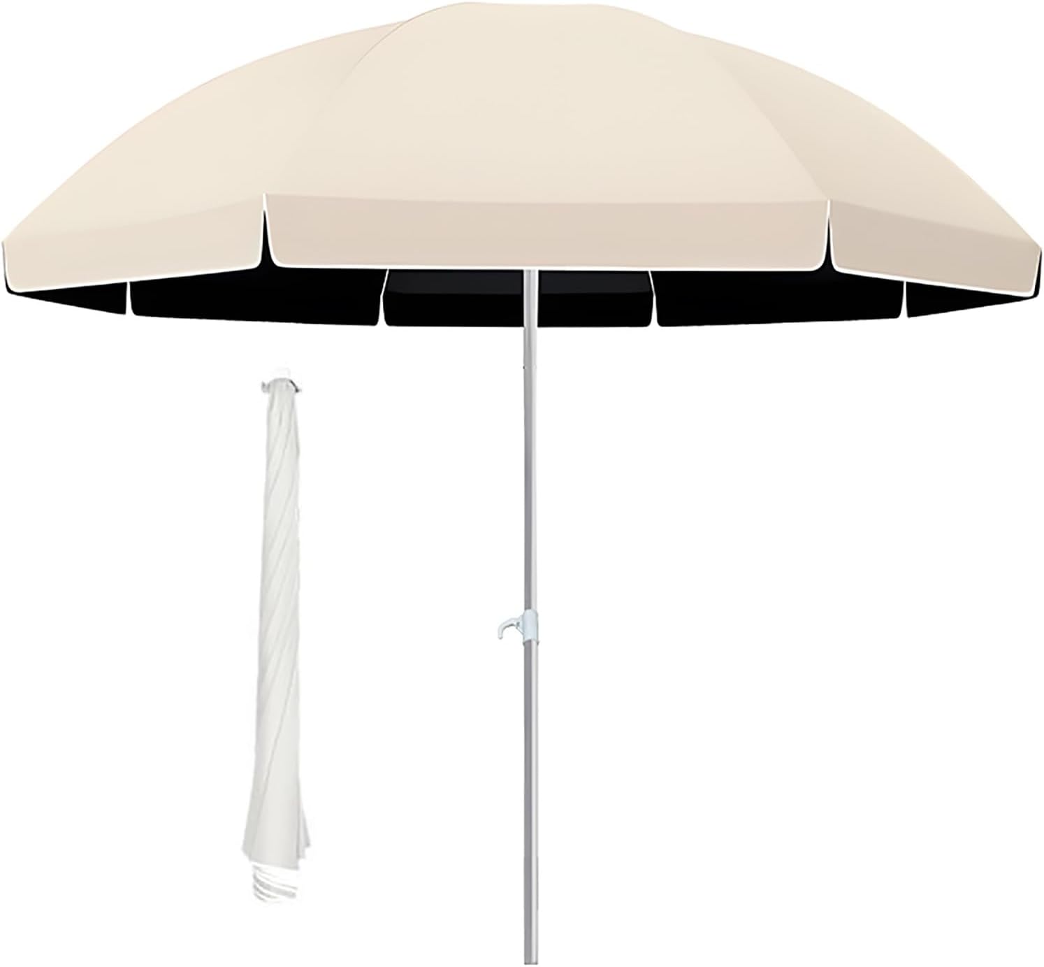 Portable outdoor beach umbrella, lightweight and portable design, allows you to easily carry it to outdoor gatherings, parties, seaside, create a cool area in the hot season, very friendly for people who like outdoor activities8 ribs, providing stability2 layers of windproof ribsAdjustable heightRound polyester canopy, inner black sunscreen coating, UV protectionThe upper and lower poles are detachable for easy carrying and transportation6 colors available, gray, black, white, green, yellow, khakiUmbrella top, 180cmUmbrella bottom ø, 155cmUmbrella height, 190cmUmbrella bottom height, 148cmStorage length, 89cmUpper mast ø, 19mm,Lower mast ø, 22mmUmbrella top, 220cmUmbrella bottom ø, 180cmUmbrella height, 195cmUmbrella bottom height, 150cmStorage length, 114cmUpper mast ø, 25mm,Lower mast ø, 28mmUmbrella top, 240cmUmbrella bottom ø, 200cmUmbrella height, 230cmUmbrella bottom height, 170cmStored length, 124cmUpper mast ø, 25mm,Lower mast ø, 28mmPacking list1×beach umbrella (without base)