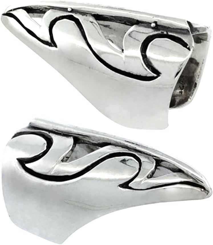 This ring is made of solid sterling silver with very nice fine workmanship and design. The bottom of the ring is open and will fit most people.