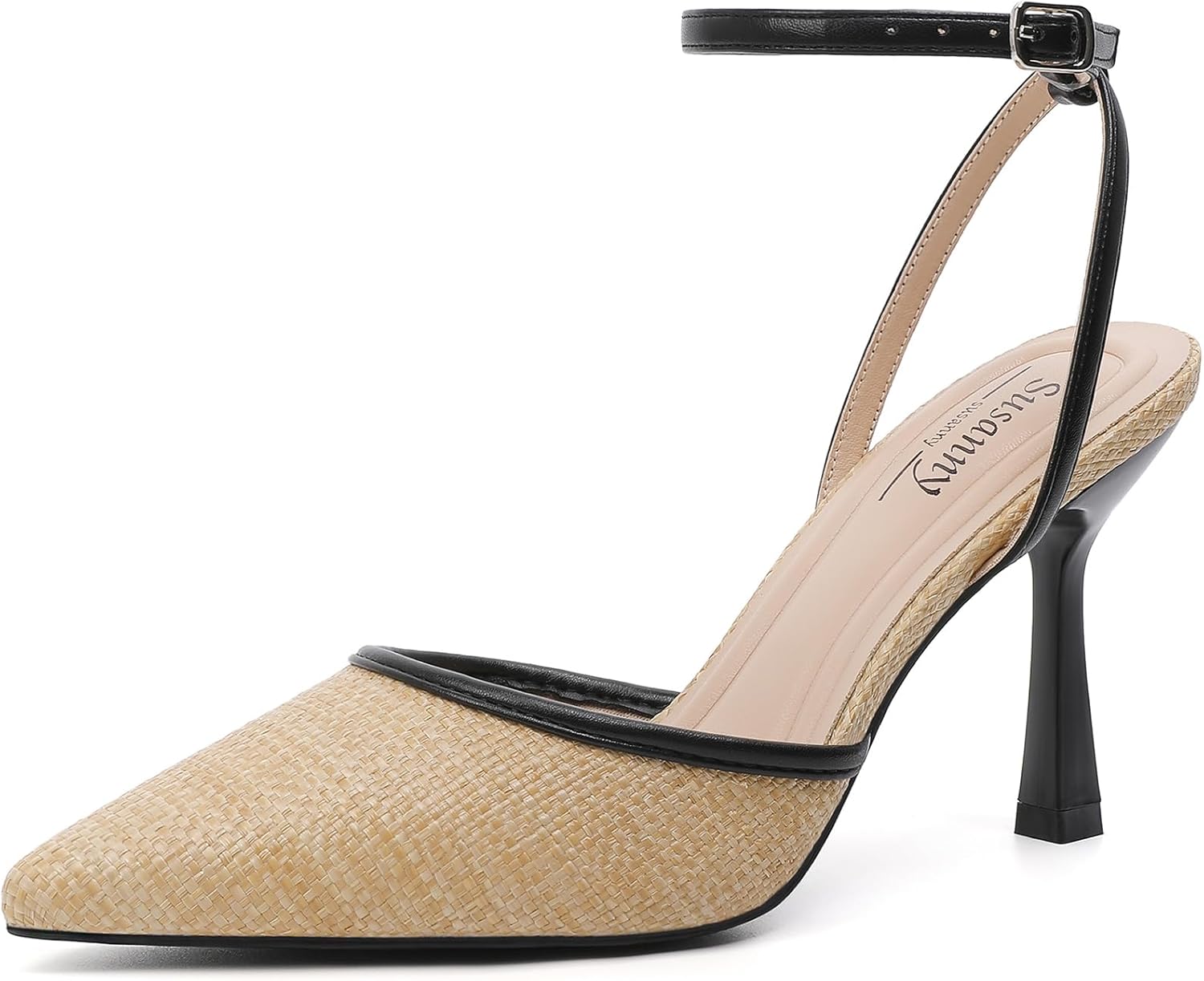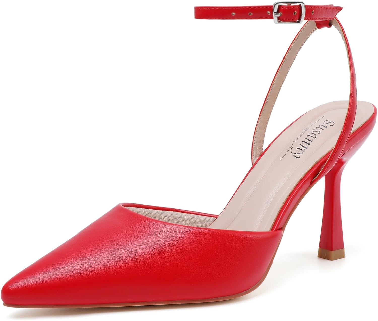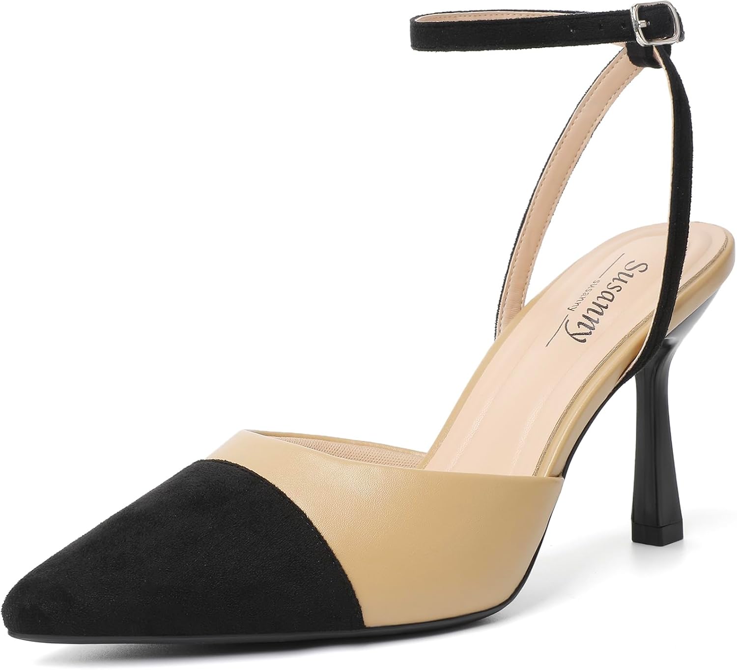 Susanny fashion sexy summer Heels for Women are elegant Kitten High Heels with a closed Toe, featuring an adjustable Ankle Strap for a secure fit. The close pointed toe and slingback stiletto heel design offer both fashion and stability, making them a must-have for every woman's wardrobe. Available in classic black white and nude, as well as sweet cute silver and gold, these shoes are suitable for brides, bridesmaids,and wedding guests alike.