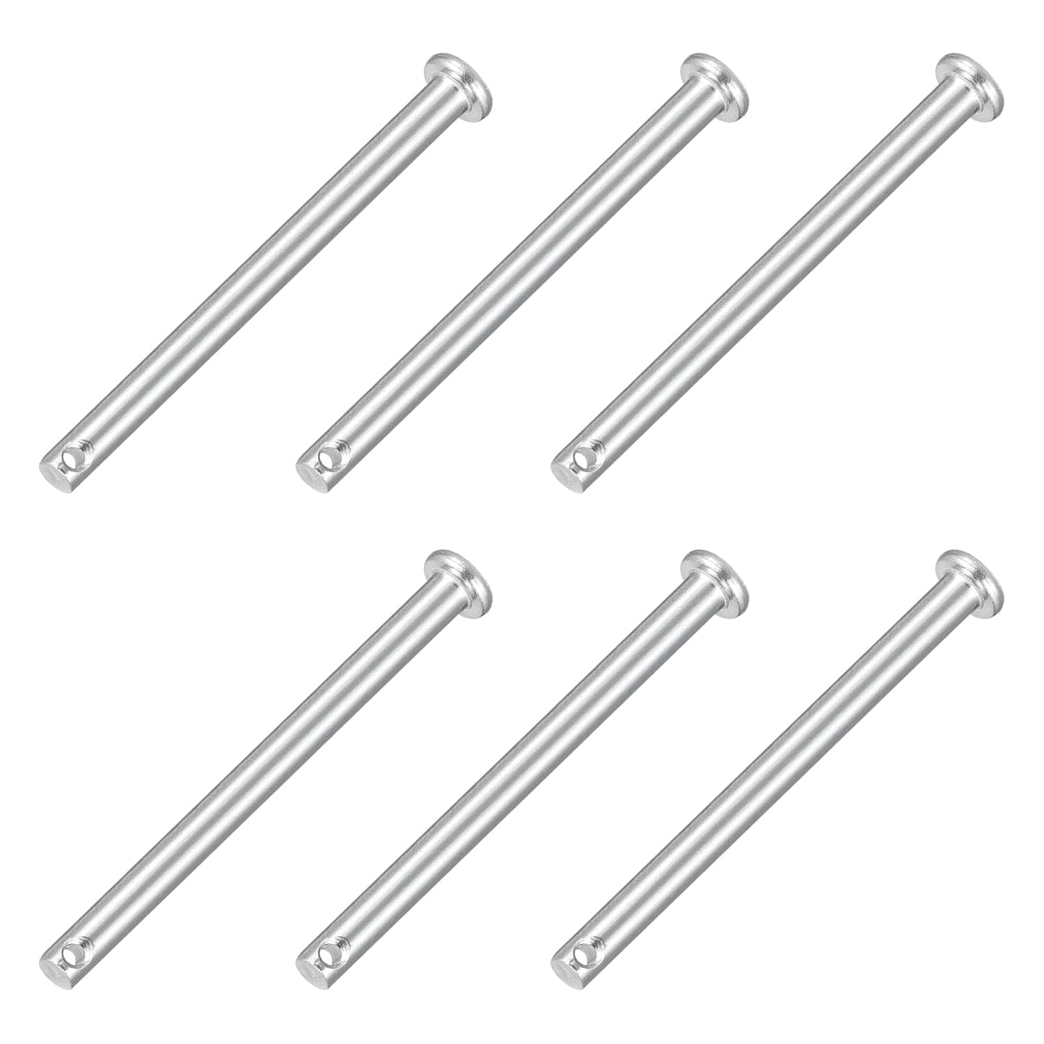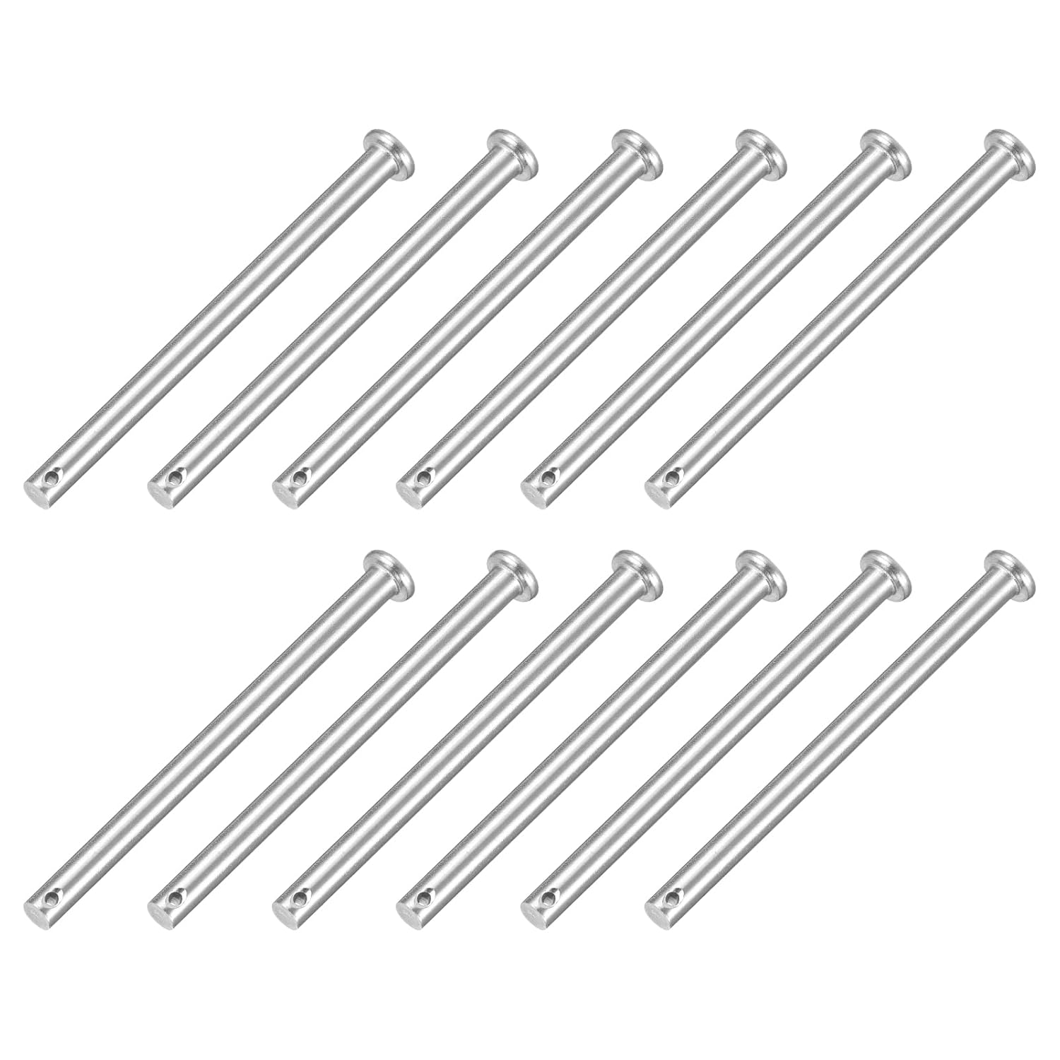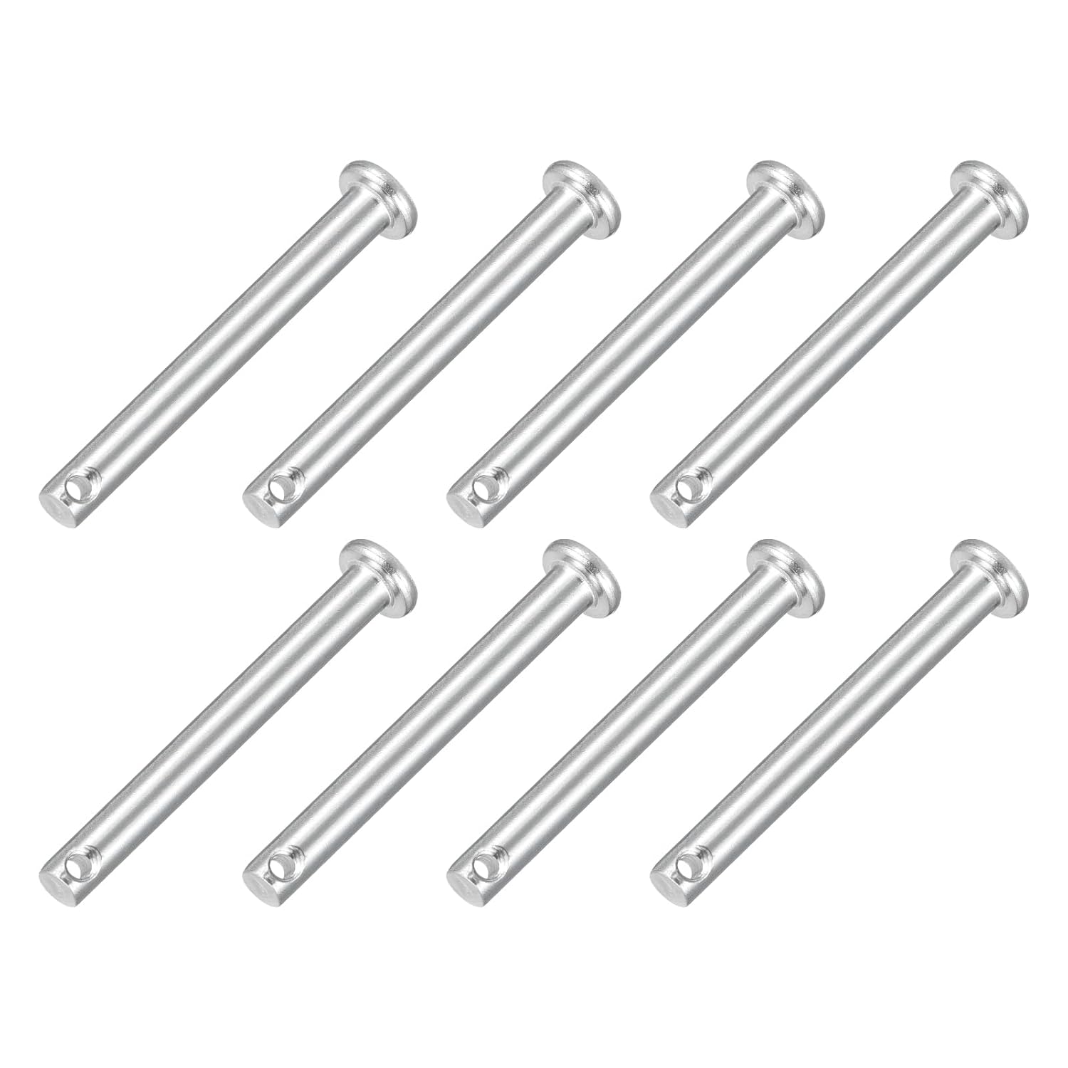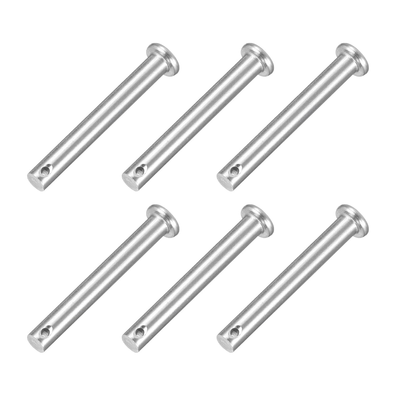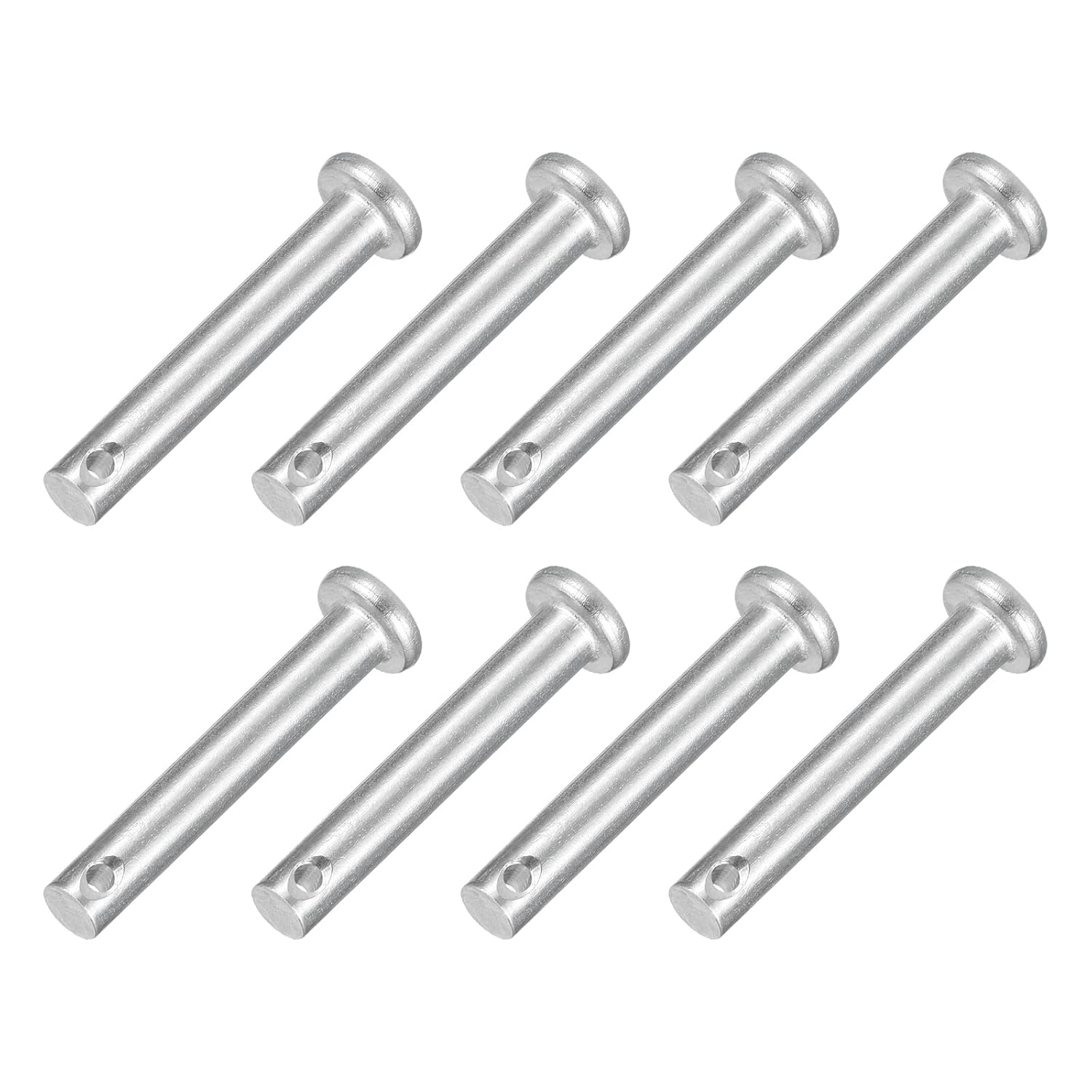 Description:Material - These dowel pins are made of 304 stainless steel, which has good hardness, load-bearing capacity, and reliability. They are anti-corrosion and anti-rust and can be used to fix parts of different materials. Durable and strong, long service life.Design - Our single-hole clevis pins are solid metal cylindrical fasteners, each pin has a through hole at the bottom of its shank, the flat head cylindrical design makes the pins more stable, easy to install, and quick to remove. You can use various locking pins such as cotter pins, split pins, or a hairpin cotter to fix them.Easy to Install - These dowel hook pins are easy to use, just insert the cotter pin or R pin into the hole of the U-shaped pin until the pin head rests on the bolt, then use pliers to spread the fork legs of the cotter pin in opposite directions, you can quickly and safely fix bolts and pins.Widely Applicable - Dowel pins are commonly used in mechanical manufacturing, industry, furniture installation, and small DIY projects. Widely used for fixing bolts and pins for automotive, machinery, garages, workshops, power equipment, cars, trucks, lawnmowers, small engine repairs, and fastening.Specification:Materials: 304 Stainless SteelColor: SilverSize: M10x50mmHead Thickness: 3mm/0.12"Head Diameter: 15mm/0.59"Effective Length: 44mm/1.73"Rod Length: 50mm/1.97"Slot Diameter: 3mm/0.12"Pin Diameter: 10mm/0.39"Packaging: 4Pcs x Single Hole Clevis Pin